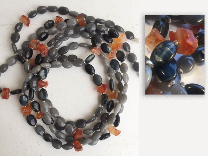 Für meine Schmuckunikate verwende ich ausschließlich echte Materialien wie Edelsteine, Koralle, Perlmutt, Horn, Glas, Silber und Gold.